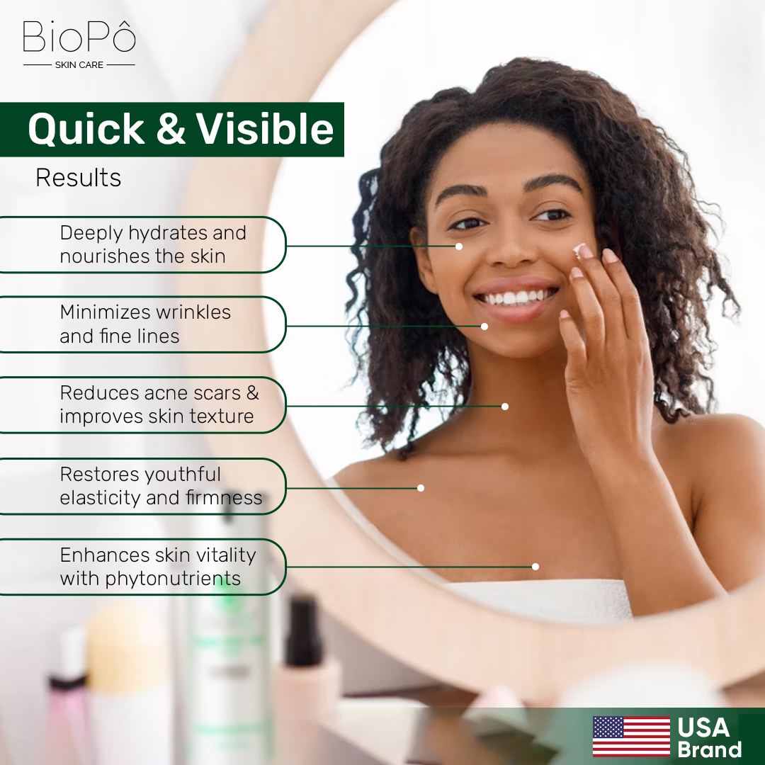 Biopo Apple stem cell is a unique cream formula that activates the natural production of skin cells, apple stem cells boosts production of skin cells, protect the skin cell from stress, and decreases aging signs, protecting it from harmful environmental factors.