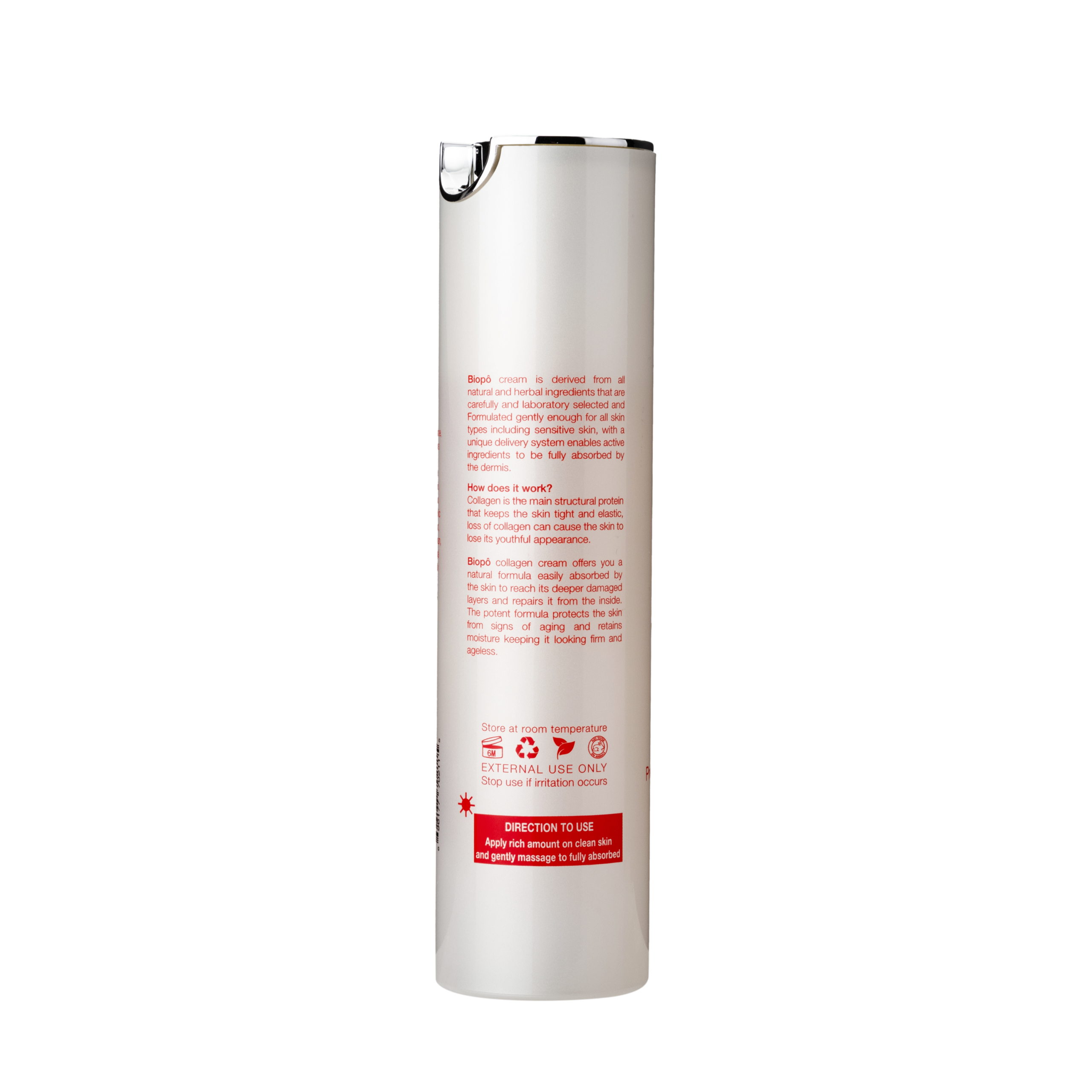 Biopô collagen cream offers you a natural formula easily absorbed by the skin to reach its deeper damaged layers and repairs it from the inside. The potent formula protects the skin from signs of aging and retains moisture keeping it looking firm and ageless.