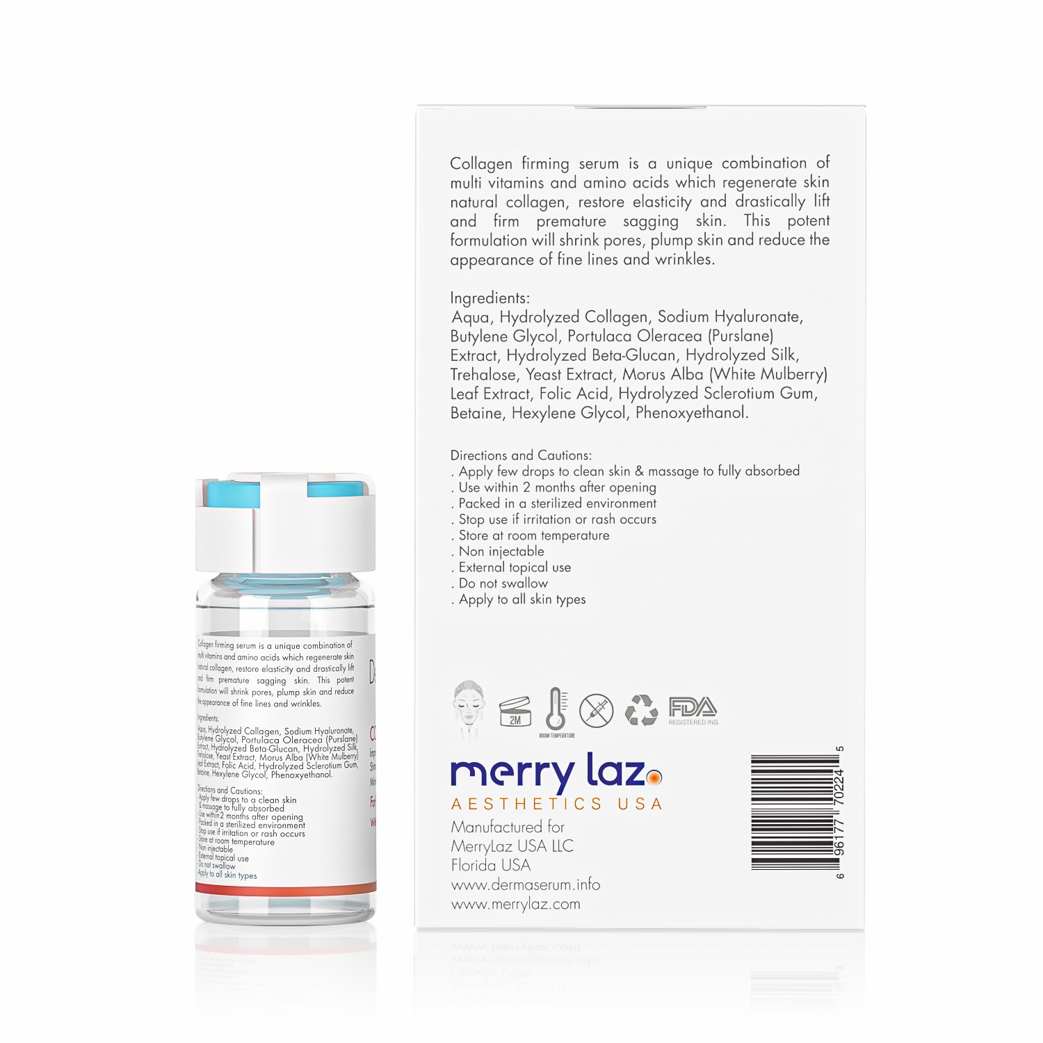 Collagen firming is a unique combination of multi vitamins and amino acids which regenerate skin natural collagen, restore elasticity and drastically lift and firm premature sagging skin. This potent formulation will shrink pores, plump skin and reduce the appearance of fine lines and wrinkles.