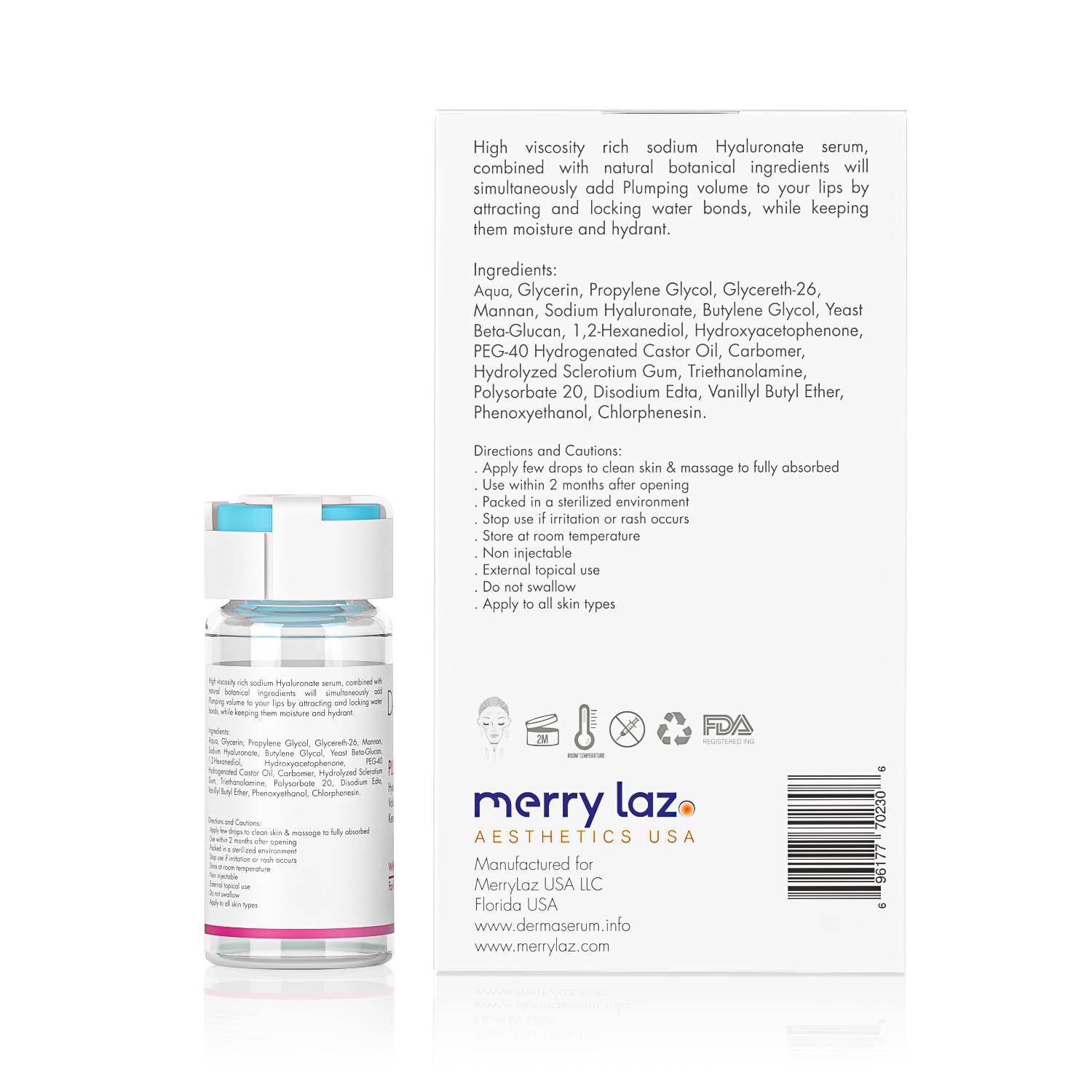 High viscosity rich sodium Hyaluronate serum, combined with natural botanical ingredients will simultaneously add Plumping volume to your lips by attracting and locking water bonds, while keeping them moisture and hydrant.